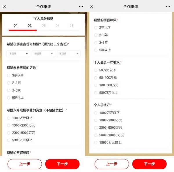 不过,海底捞并未透露将具体以何种形式开放加盟以及资金要求,仅在加盟合作申请表中有较为粗略的信息征集。