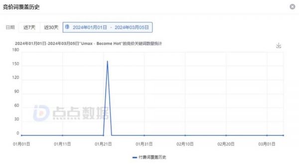Umax 1 月 22 日的竞价词|来源:点点数据