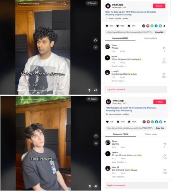 Umax 效果最好的一则视频,男主前后颜值对比|来源:TikTok 截图