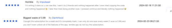 不过,在大约 200 条的用户评价中,有不少用户打了 5 星好评,却留下了不满意的评价。有用户表示,“我留下好评是为了让你看到我,你们 App 的体验十分糟糕”。而不满意的评论主要都集中在付费后觉得浪费了钱,或者抱怨付费后的权益不够,比如付费后也只能一周扫脸一次、按照指导修眉后系统还给出一样的建议。
