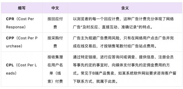 所以,互联网广告或者商业产品的效果和计费,就需要有一套评价指标。通过不同的计费方式,广告主可以选择更加适合自己的投放形式。