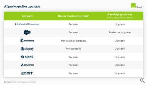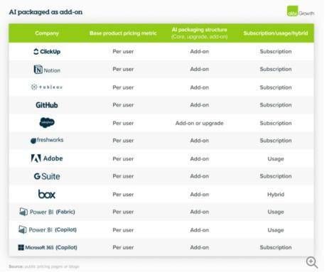 如果你的GenAI功能还不错,但有点“鸡肋”,不妨将其打包为“升级选项”,作为销售杠杆,以提高“Pro版”的转化率,或覆盖GenAI的部分成本。