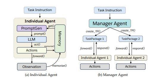 模型框架: AgentLite 分为 Maganer Agent、Individual Agent 两层,Manager Agent 根据给定任务指令创建子任务并进行分发,Individual Agent 通过 PromptGen 模块生成指令,发送给 LLM 执行后将结果输出