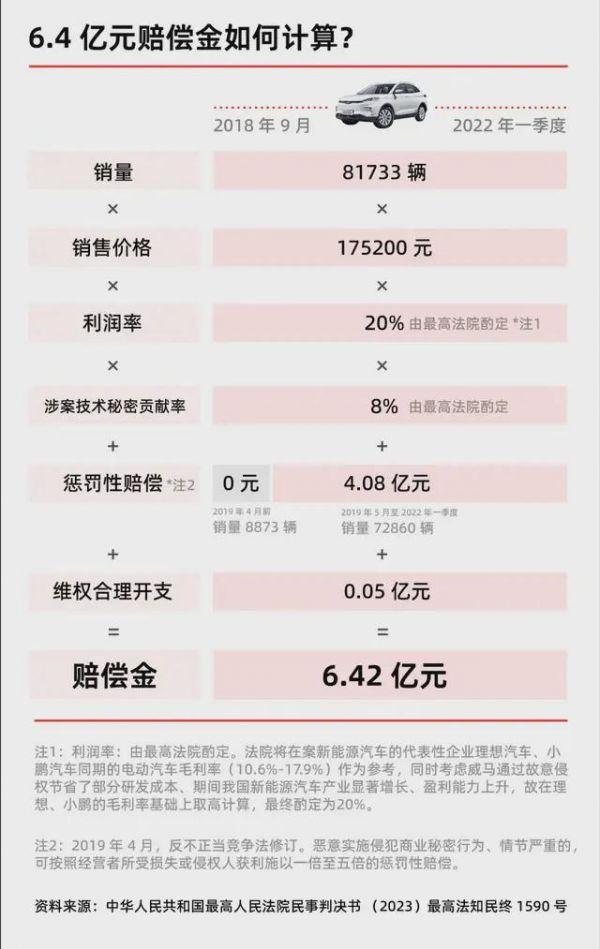 最高法院对威马的判赔金额,也从一审的 700 万元增加至二审的 6.4 亿元。