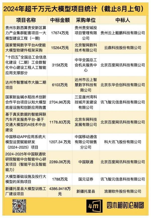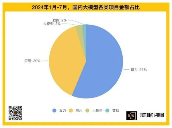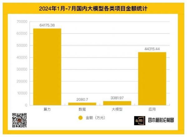 在这七个月中,市场中可统计到的大模型中标金额约为11.40亿元,远超2023年全年大模型中标项目披露的7.89亿。