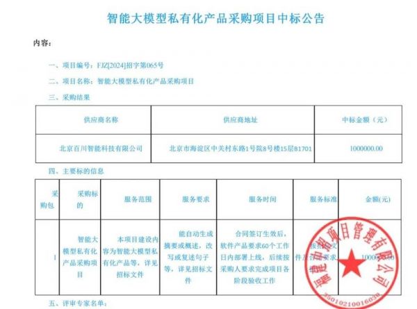 8月5日,百川智能以100万元中标福建实达集团大模型私有化项目。这是百川第一次出现在公开招投标信息中。