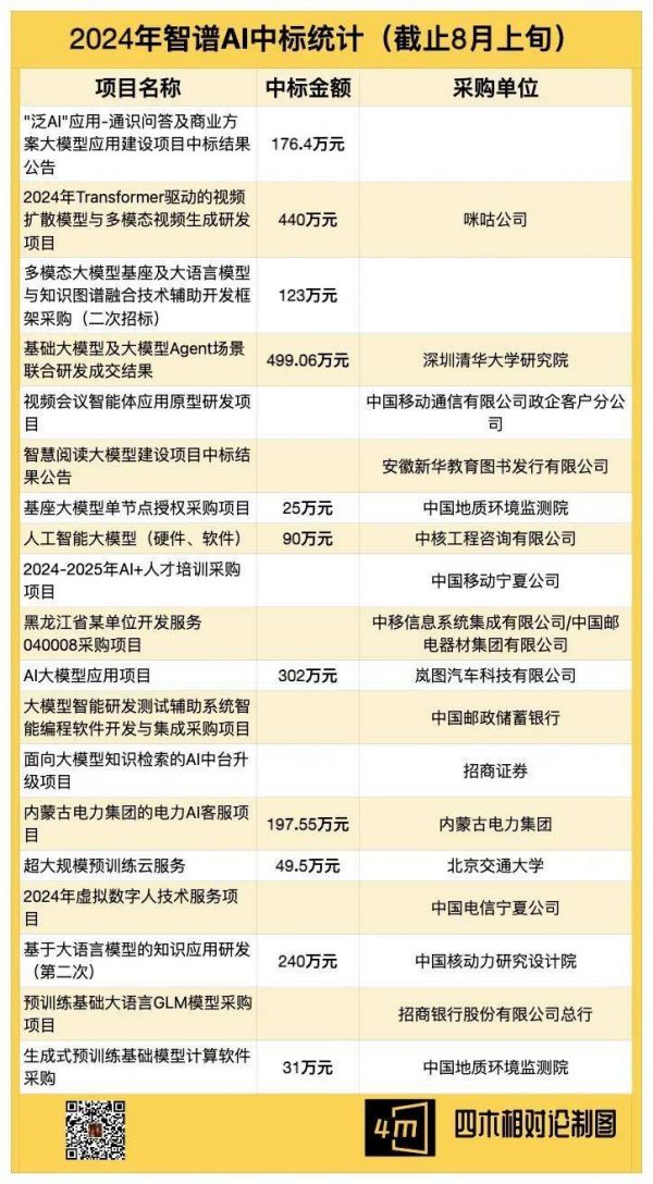 有信息显示,去年智谱AI本地部署千亿模型的报价约为4000万元。