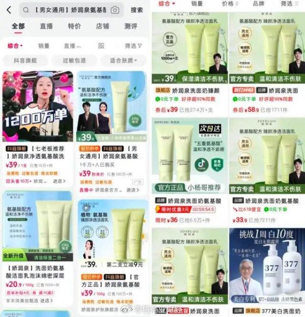 据统计,疯狂小杨哥从原本的垃圾袋等便宜的商品,到逐渐涉足美妆等高客单价的行业,一向标榜为“兄弟”省钱的直播间悄然变成收割粉丝的专业卖场,攫取的利益空间更甚。而其带货的标价也与网络平台货架电商等其他渠道相差无几,甚至更贵。