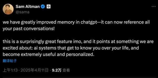 未来,也许正如Sam刚发的推特中说到的:“AI将伴随你的一生,逐步深入了解你的需求,最终成为高度个性化且极具价值的智能助手。”