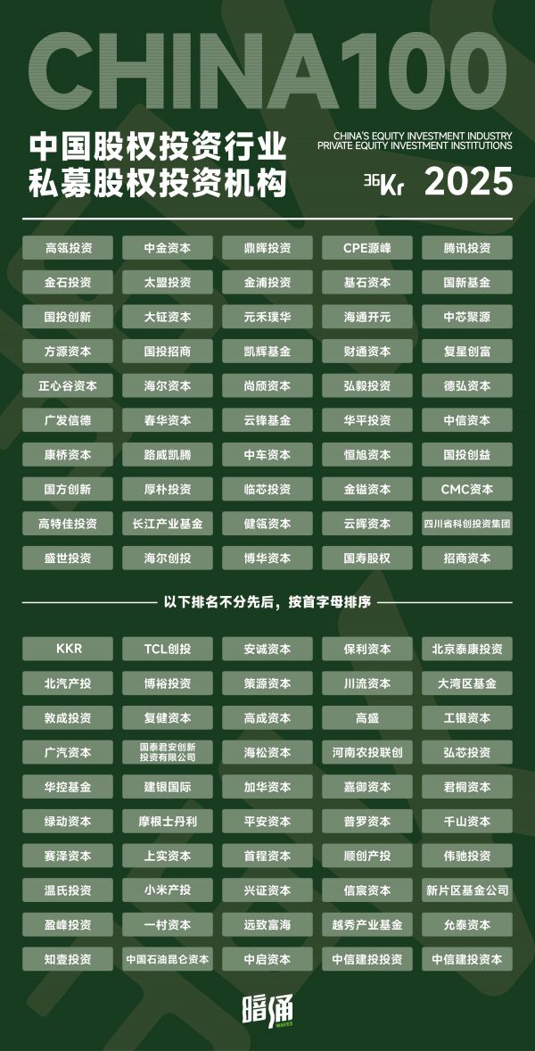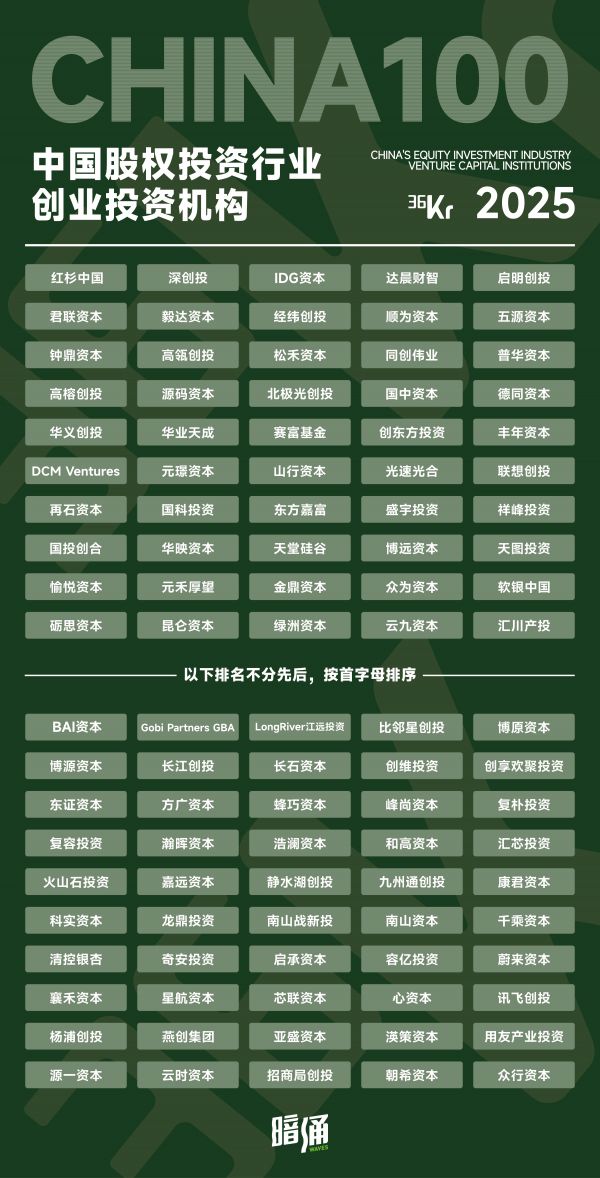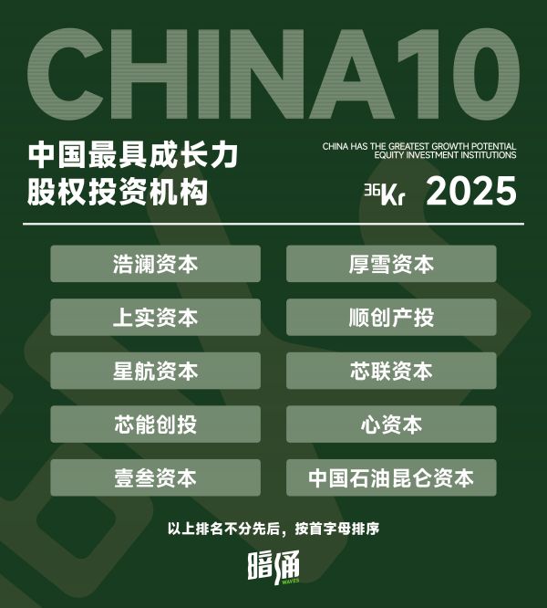 值此时刻,36氪2025年度「中国股权投资行业投资机构」系列名册,正式发布!详情请见: