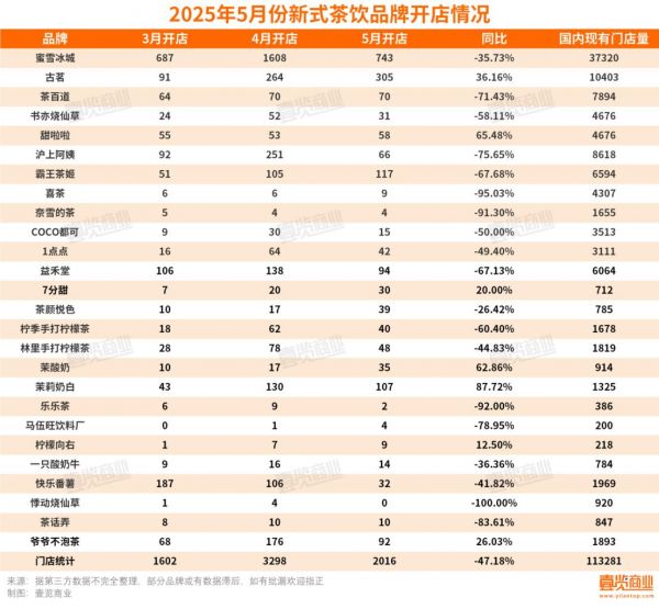 相比之下,茶百道则面临门店收缩压力。尽管其单月新增门店数达到70家,但净门店数却减少至7894家,较4月减少104家。