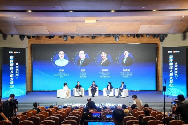 赛后圆桌论坛环节,北京大学深圳研究生院教授、深圳市人工智能学会常务副理事长兼秘书长邹月娴、外交学院英语系教授武波、Cadence Translate凯韵翻译联合创始人赵晨威、深圳时空壶技术有限公司CTO石伟展开深入探讨。