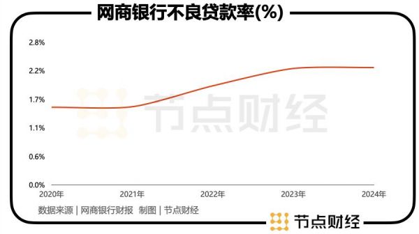 财报显示,截至2021年末、2022年末、2023年末,网商银行的不良贷款率分别为1.53%、1.94%、2.28%,并继续上行到2024年末的2.3%。