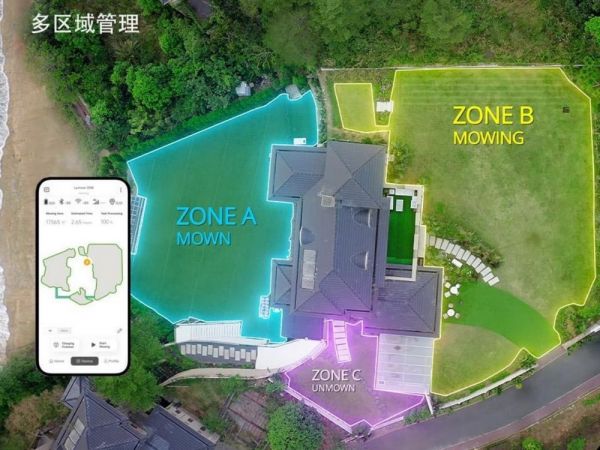 RTK厘米级定位精度与视觉的场景识别能力可以互补。RTK模块通过地基增强系统实现绝对位置锁定,确保割草机在广域范围内的定位可靠性;同时,系统还搭载了双目AI视觉与超声波传感器融合技术,可实现360°多方向环境探测与智能避障,精准识别并绕过庭院桌椅、岩石、宠物及儿童等障碍物,以确保设备安全、高效、稳定运行。