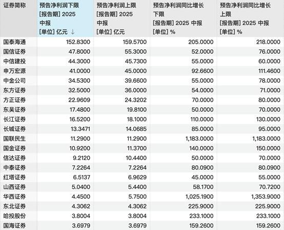 首先是,在经历了2024年的相对低谷后,内地证券业的盈利势头在明显复苏。此次半年报预告中,多家机构提到了投行、经纪(财富)、自营(交易)等业务的增长趋势。
