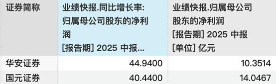 此外,华安证券、国元证券公告业绩快报,两家券商的归母净利润同比增长也都超过40%。