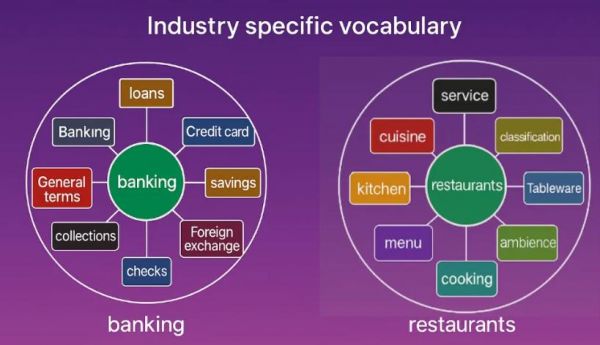 银行术语从来不会出现在餐馆的语境中。 餐馆术语从来不会出现在银行的语境中。