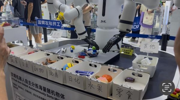 如果上周末去到上海世博展览馆,你可能会看到:机械臂在分拣零食和实验器材,机器人在相声台上捧哏逗哏,机器狗在场馆内灵活穿梭。