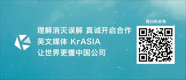 在全球经济复杂格局的当下,英文报道不仅是向海外客户和消费者传递价值主张的重要手段,也是企业在世界范围内的认知沉淀。英文媒体 KrASIA(kr-asia.com)致力于向世界介绍中国商业和文化。英文网站约60%的读者为东南亚核心国家的商业人群。KrASIA 通过优秀的搜索引擎优化,专业的英文内容和可靠的社交媒体矩阵,以及全球顶级信息数据平台彭博终端和道琼斯 Factiva 等外部收录平台,帮助中国公司提升全球品牌。如果您的公司对英文传播有相关需求,或者希望与 KrASIA 合作提供出海服务,欢迎扫描下方的二维码或点击“此处”填写表单,获取 KrASIA 媒体服务刊例和工作人员的联系方式。