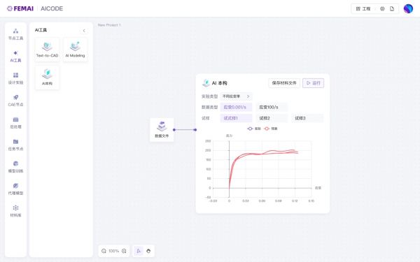 FEMAI/AICoDe 平台是由清航飞迈推出的一款深度融合人工智能的智能化CAE工作台,通过大语言模型微调与自研算法相结合,可自主调用模块化工具搭建工作流,一站式完成实验采样、批量仿真、特征工程、模型训练及智能优化等问题。