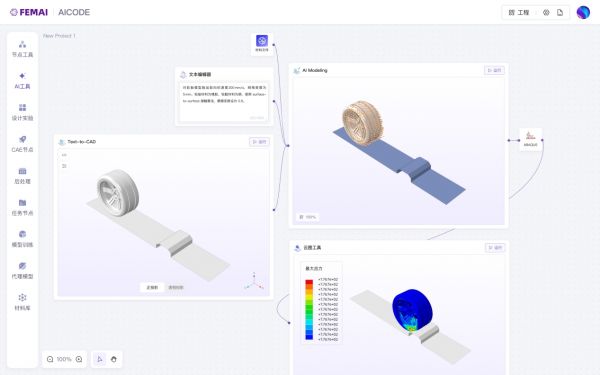根据官方透露,以往,工业仿真从模型构建到结果分析往往需要数周时间,如今,借助FEMAI/AICoDe 平台,复杂的仿真任务可以在分钟级内即可完成,大幅缩短了产品研发周期。FEMAI/AICoDe 平台摒弃了传统CAE软件繁琐复杂的操作逻辑,用户仅需通过自然语言描述设计需求,平台即可智能解析并自动执行。