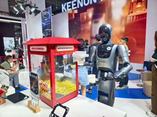 △擎朗智能机器人在WRC现场铲爆米花 图源:《智能涌现》拍摄