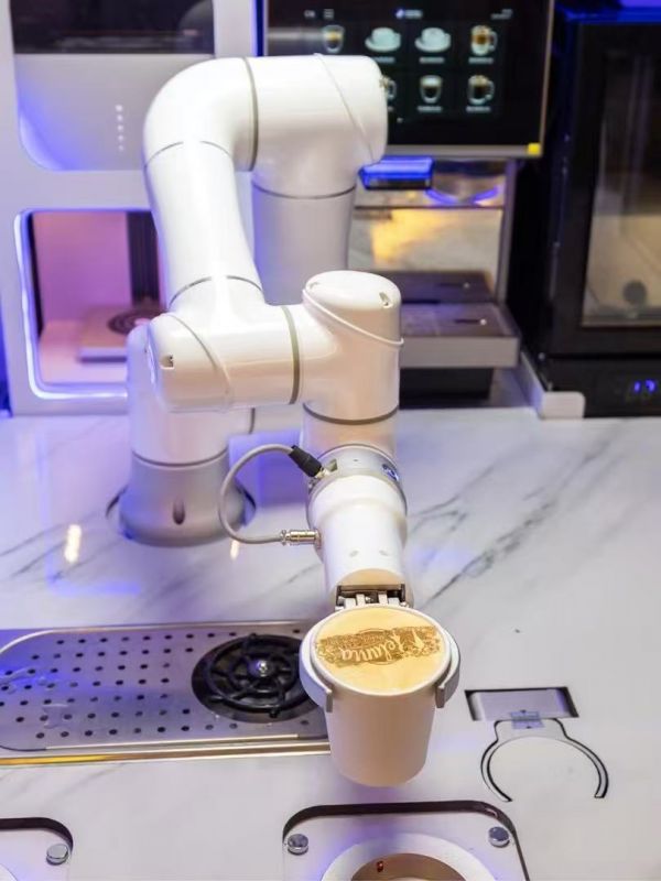 自主研发控制系统及运动控制算法,通过机器学习算法与3D视觉系统,机械臂可实时监测原料状态(咖啡油脂厚度、牛奶泡沫密度等),误差<1%,从而保证饮品品质稳定。