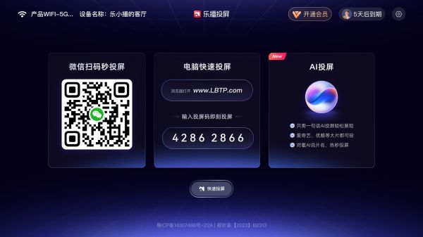 过去,乐播曾用十年时间铺设了中国的“屏幕底座”。自2013年发布以来,乐播就一直主打为用户提供免费的投屏服务。据其官方披露,目前已为超过 16亿手机与5亿台电视建立起跨品牌、跨系统、跨网络的连接。如今其正在努力成为AI成果投射的统一入口。