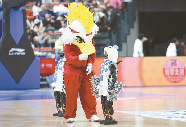 1月1日,在2025-2026赛季中国男子篮球职业联赛(CBA)常规赛第九轮比赛中场休息时,人形机器人在为现场观众表演。 新华社记者 张晨霖 摄