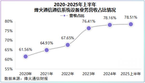 长期以来,通信系统设备业务为公司业绩的压舱石,2020-2025年上半年为其贡献了超60%的营收。
