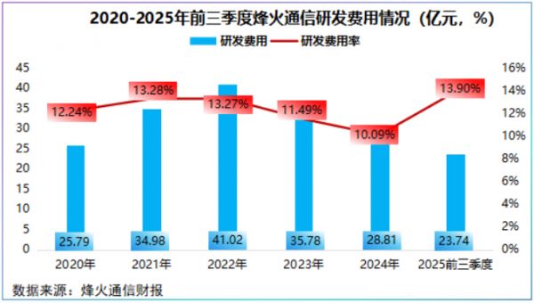 2020年至2025年前三季度,公司研发费用累计高达190.12,研发费用率稳定在10%以上,不论是绝对值还是占比均远超中际旭创、新易盛等千亿巨头。