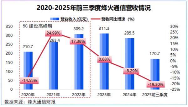 受此影响,烽火通信营收同比增速从2021年的24.99%下滑到了2023年的0.68%,甚至2024年开始负增长。