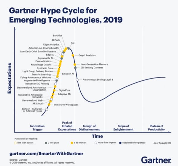 Gartner发布2019年度新科技技术成熟度报告
