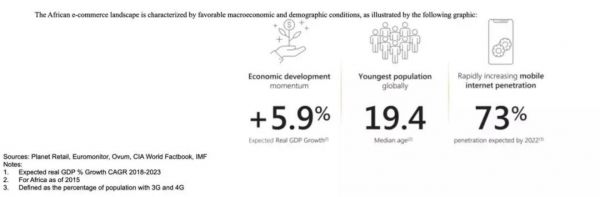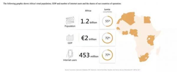 非洲人口、GDP、互联网用户数据(来自Jumia招股书)