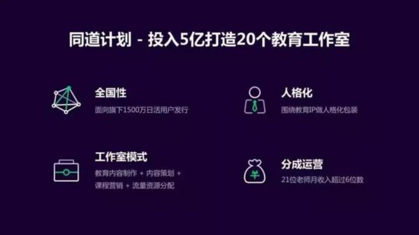 2016年,在宣布用户量突破6亿的同时,网易有道CEO周枫发布了有道精品课战略,并推出旨在扶持优秀教师机构的“同道计划”,投入5亿孵化20个教育工作室。这一战略将有道词典从单纯的工具向空间更大的教育赛道拓展开来,至此,网易有道真正迈入在线教育行业。