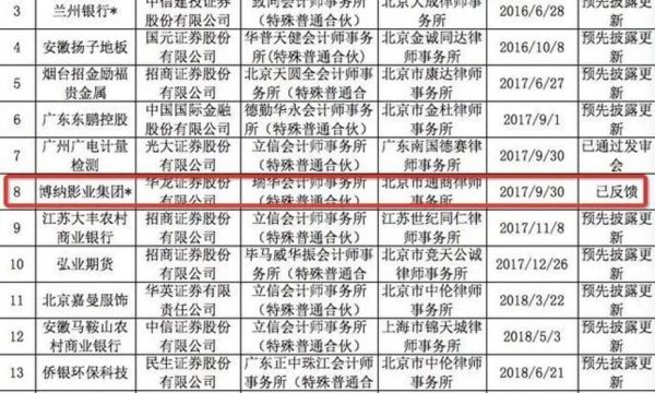 目前,博纳在深交所中小板的上市排队情况是“已反馈”状态的第一顺位,在博纳之前还有20多家公司的状态属于“预先披露更新”。有业内人士说,从“已反馈”到“预先披露更新”2~4个月都有可能,时间短的几十天也曾经有过。而预先披露更新后,在排队的公司才能上会。