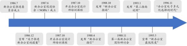 1986年12月,新办公室推进委员会宣布了“新办公室推广方案”,展示了办公环境改善的必要性和基本方向。