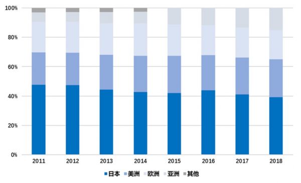▼ 百乐海外市场占比逐年提升