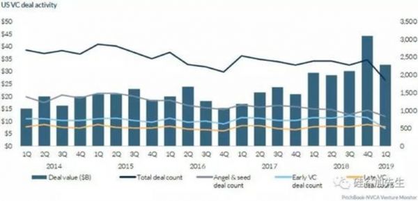 据硅谷投资权威机构Pitchbook资料显示,硅谷2019年第一季度成为近10年来风险投资第二活跃的季度,这主要归功于中晚期投资的给力。而此消彼长的则是早期投资的谨慎,与2015年第一季度的1483个投资项目比,2019年第一季度仅有828项目的投资。