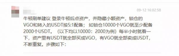用户想要解锁VGO,必须在牛顿交易所充值USDT,并购买解封区内的高价VGO进行刷量。