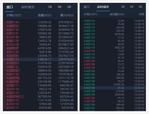 而用户充值USDT购入的VGO,又分为“可用区”和“限制可用区”两部分。可用区的币可以自由交易,但挂出的卖单价不能低于买入价。