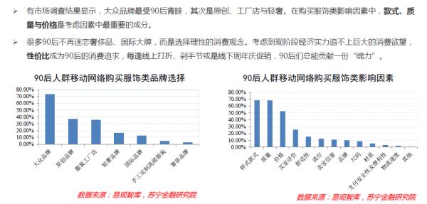 90后渴望与众不同,他们注重品牌个性,但出于经济能力暂时相对有限的考虑,他们更愿意通过多元的消费渠道线上线下比价格,用最少的钱买到最想要的衣服,而出于网上价格更优惠的因素,他们普遍热衷网购。