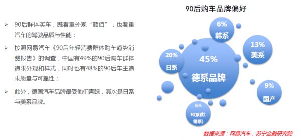 90后买车,外观样式与质量并重,按照网易汽车《90后年轻消费群体购车趋势消费报告》的调查,中国有49%的90后购车群体追求外观和样式,同时也有48%的90后车主追求质量与可靠性。此外,德国汽车品牌最受他们青睐,其次是日系与美系品牌。
