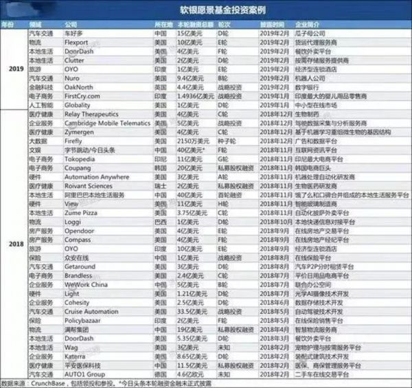 第一支愿景基金成立的两年来,一期共投资了ARM、Uber、滴滴出行、今日头条、WeWork、Cruise等超70家全球企业,行业涵盖自动驾驶、人工智能、芯片、VR/AR、癌症检测和基因诊断等前沿科技,以及汽车交通、物流、电子商务、外卖配送、互联网金额、生态农业等消费领域……甚至还投资了房地产和宠物护理行业。