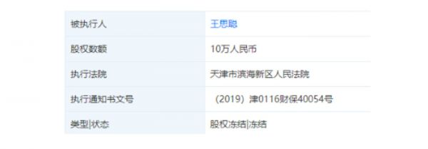 此外,王思聪100%控股的天津普思资产管理有限公司的股权,也遭到了天津市滨海新区人民法院的冻结。