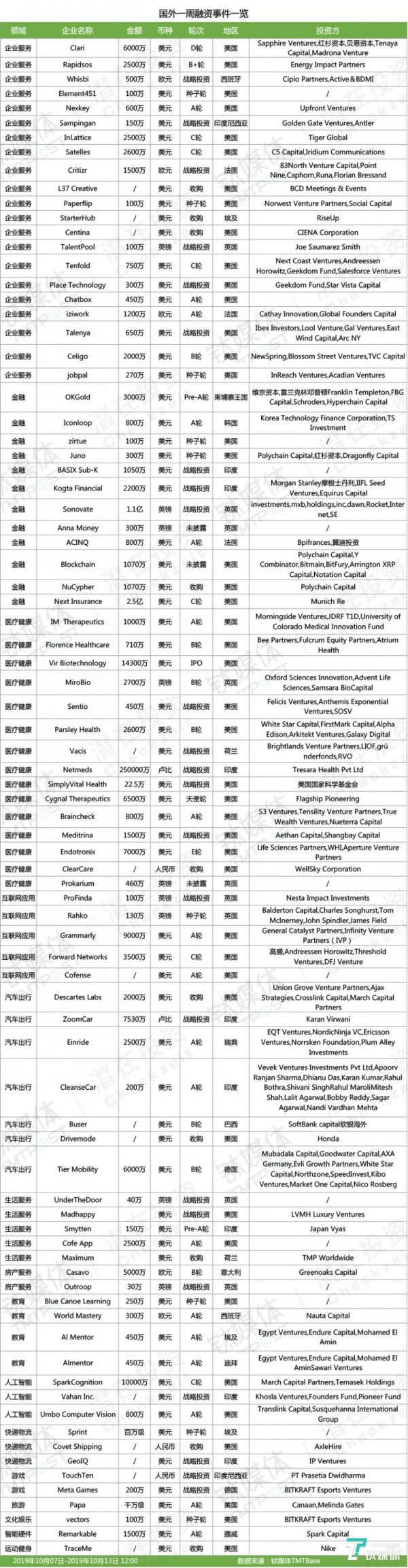 第36周收录93起投融资事件,国内上亿融资频出,国外企服、金融、医疗健康投资继续领跑 | 潜在周报