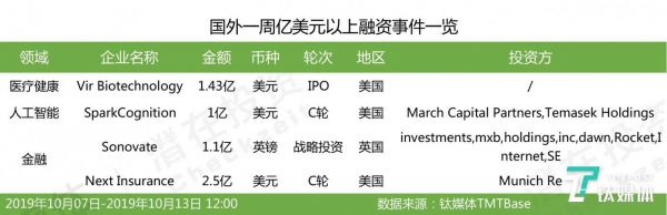 第41周收录100起投融资事件,国内融资数量占国外1/2,国外企服、金融、医疗健康投资继续领跑 | 潜在周报