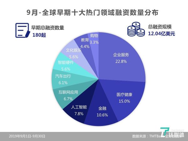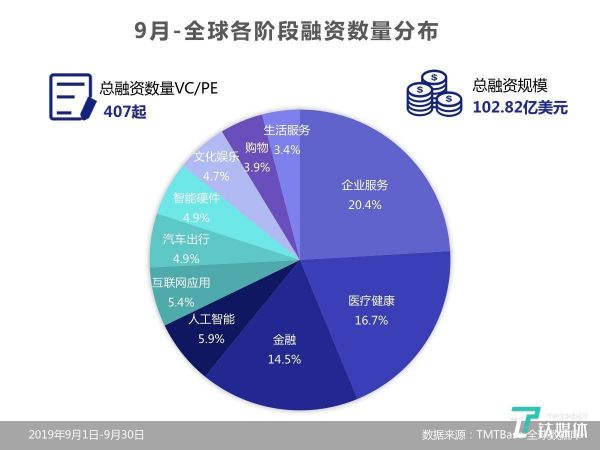 钛媒体「潜在投资」2019年9月 一级市场月度报告发布:国外融资金额近中国3倍,企服、医疗、金融持续领跑