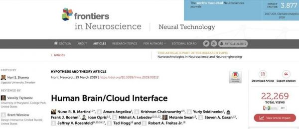 研究人员在论文中说,一个稳定、安全、实时的系统可以将云与人脑连接起来。实现这样一个系统的一种有希望的策略,称为“人脑/云接口”(B/CT),将基于一种称为“神经纳米机器人”(neuralnanorobotics)的技术。