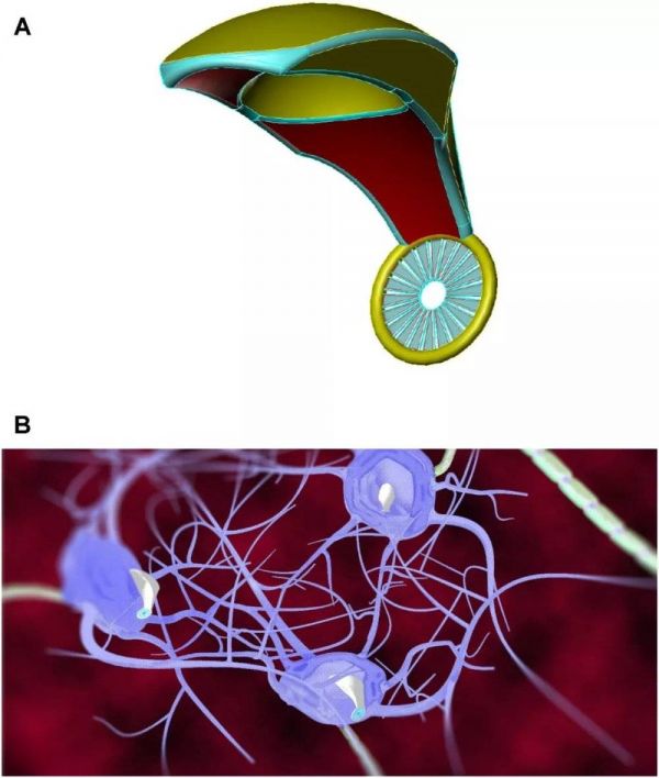 然后,它们将通过辅助纳米机械光纤,以高达每秒∼6×1016比特的速度无线传输突触处理的信息和编码人脑电信息。辅助纳米光纤的传输能力达1018bits/每秒,并能为基于云的超级计算机提供快速的数据传输,以实现实时大脑状态监测和数据提取。